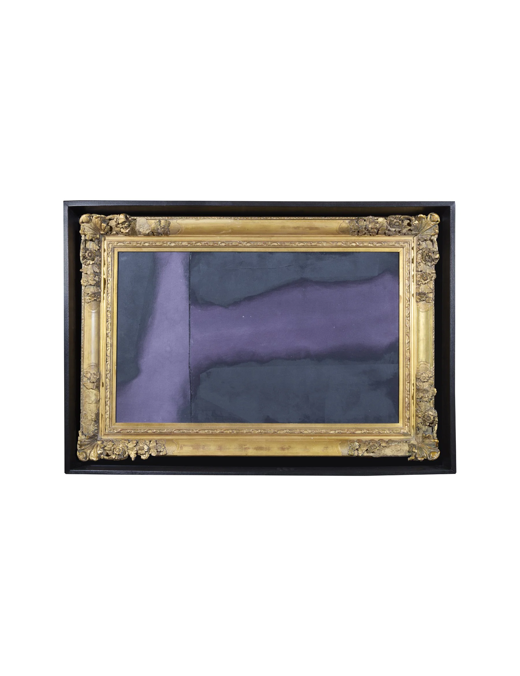 Vintage Canvas and Textiles, Natural Dyes, Gesso, Plaster, Acrylic and Pastels38” x 55” Dimensions include frame. Nodding to the Napoleonic era, this piece’s 18th-century frame is elegantly showcased within a sleek, secondary gloss black hardwood shadowbox frame.