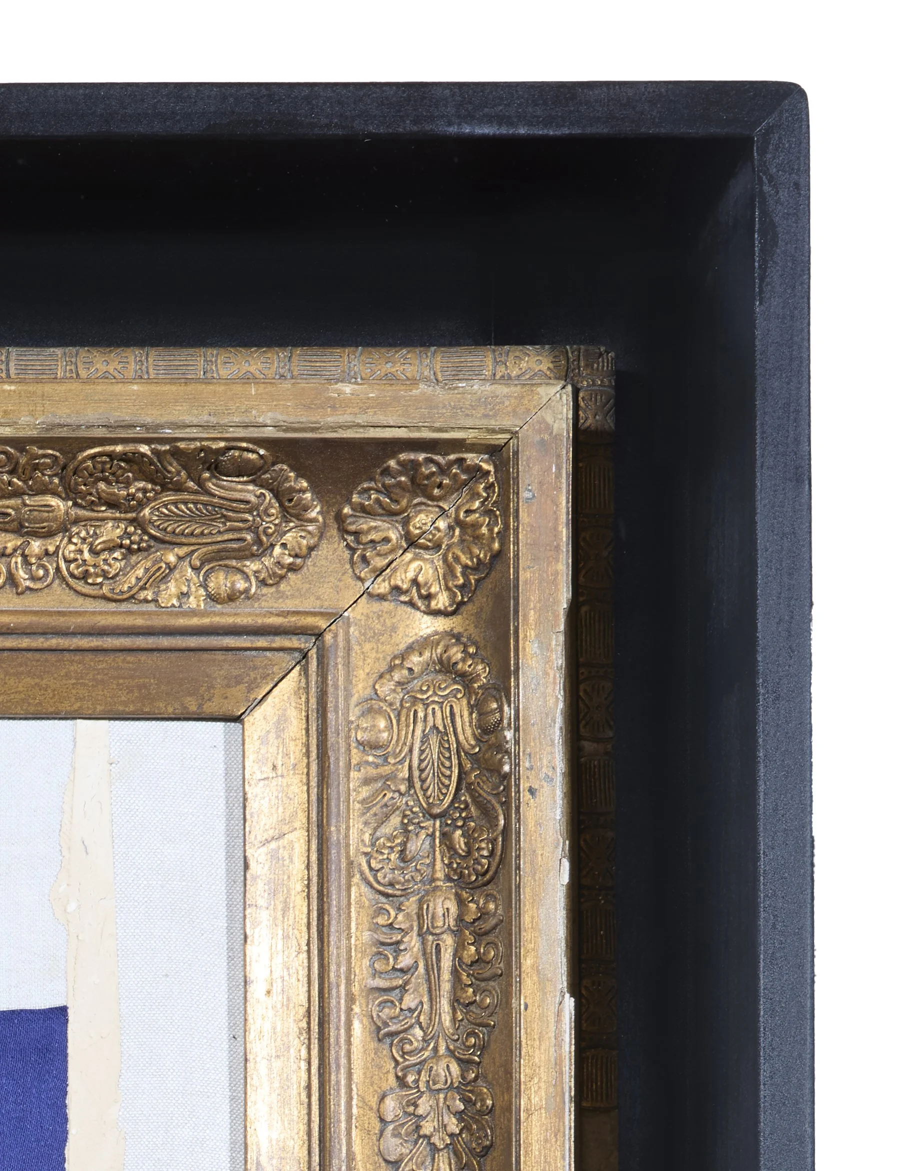 Nodding to the Napoleonic era, this piece’s 18th-century frame is elegantly showcased within a sleek, secondary gloss black hardwood shadowbox frame.