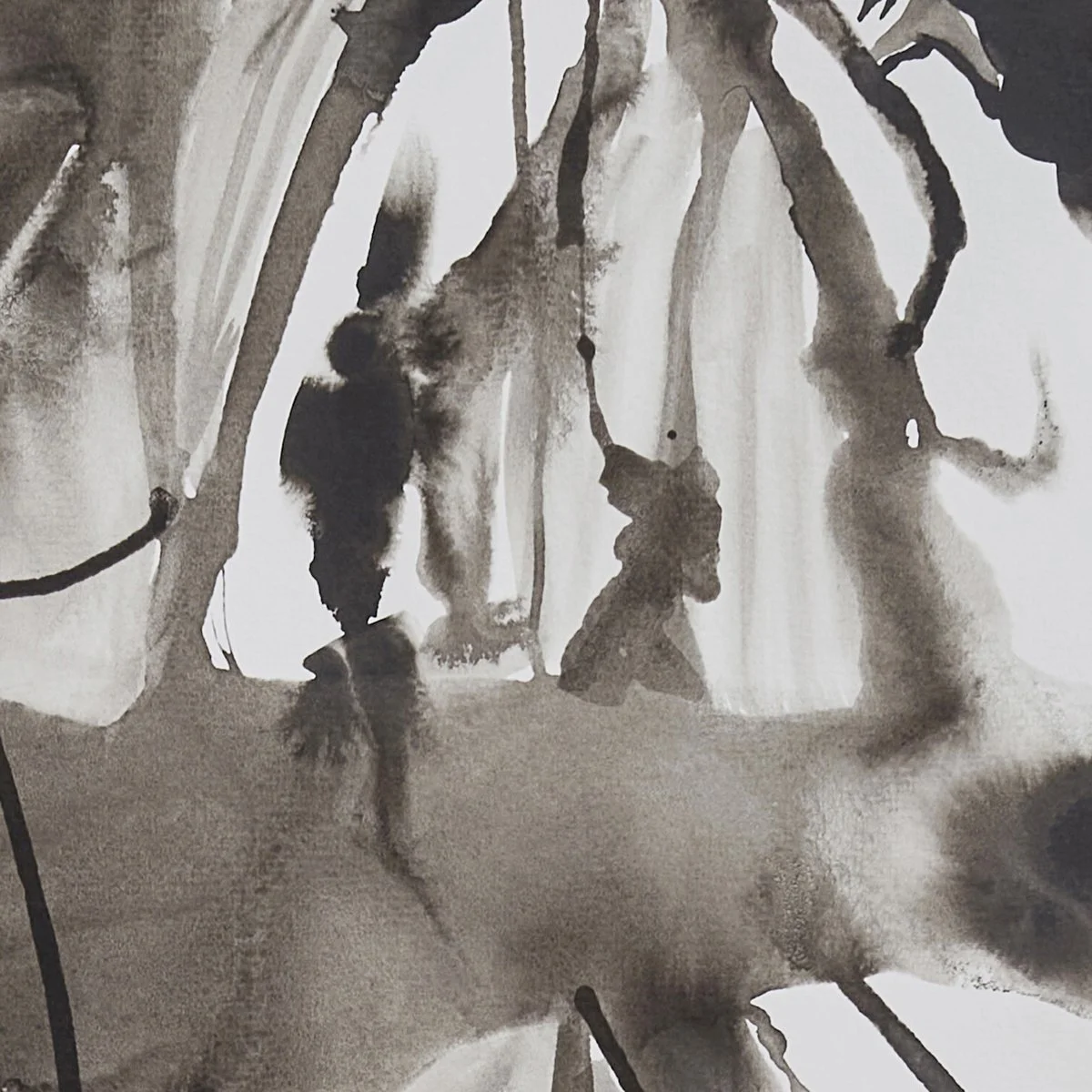 Black India ink on archival paper mounted under UV-protective glass on fine linen