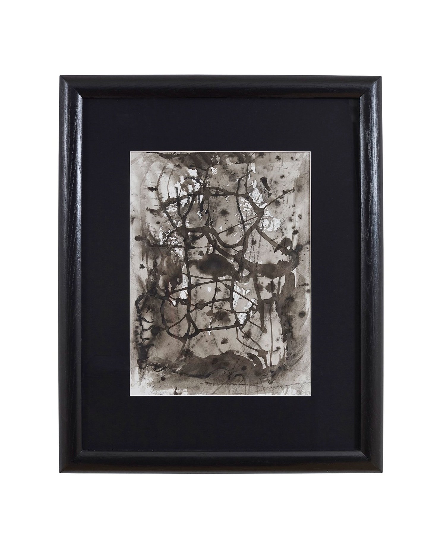Black India ink on archival paper mounted under UV-protective glass on fine linen